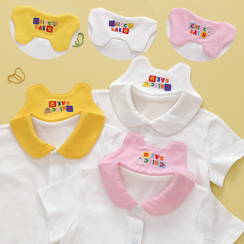 現物miki子供服男女童アニメ熊小兎耳アルファベット刺繍海軍襟半袖シャツ