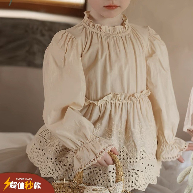 在庫一掃セール〜2025春秋女の子韓国風中空レース襟ドールシャツベビー長袖シャツ