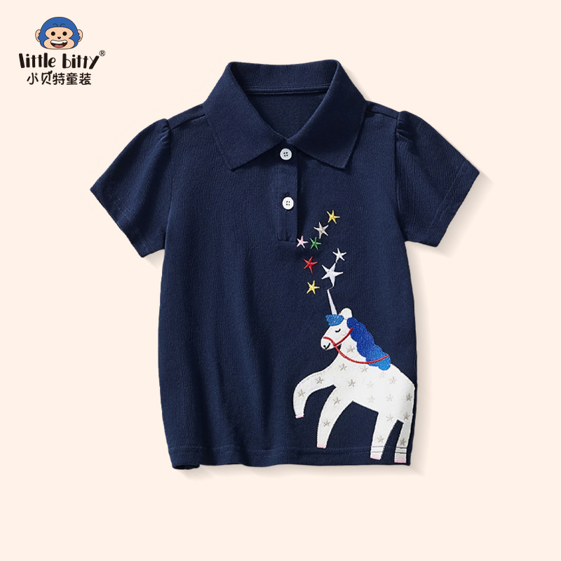2025 夏の新しい子供の漫画ユニコーン半袖ポロシャツトップスガールズファッショントレンド服