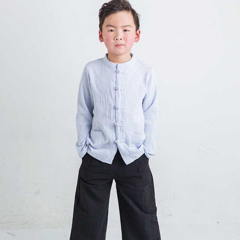 中国風童装古着漢服春秋長袖新民族風児童綿麻シャツ男児レトロ唐装