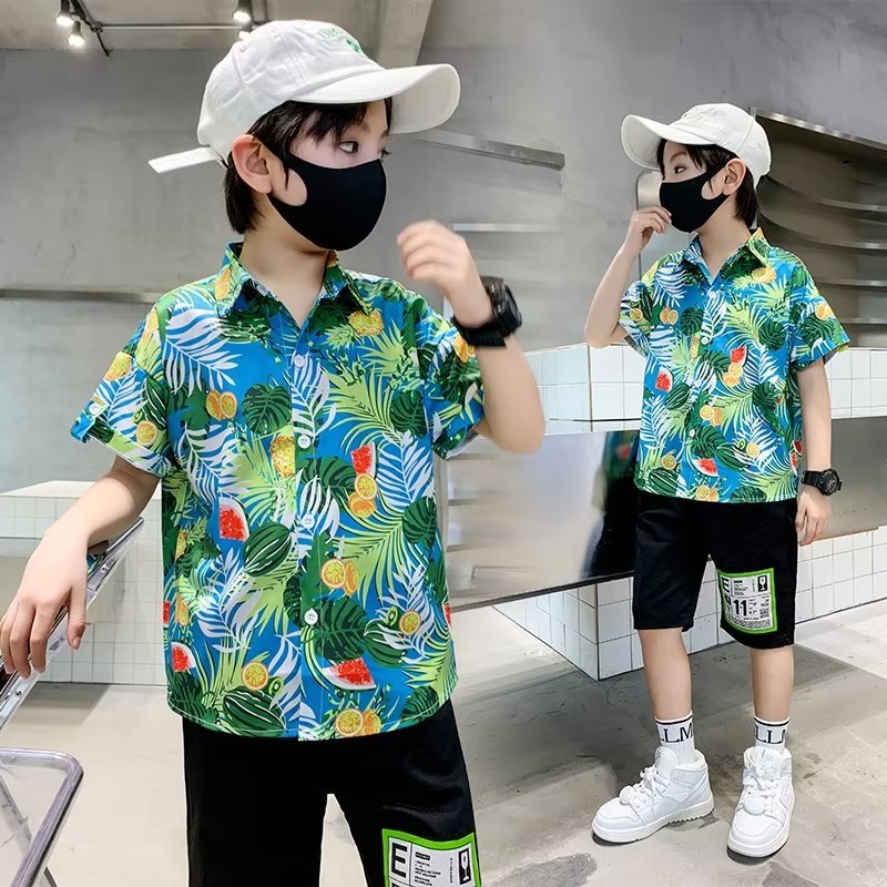 子供服男の子半袖シャツ子供春夏服花シャツ2023新作赤ちゃん夏服洋気上着ブーム