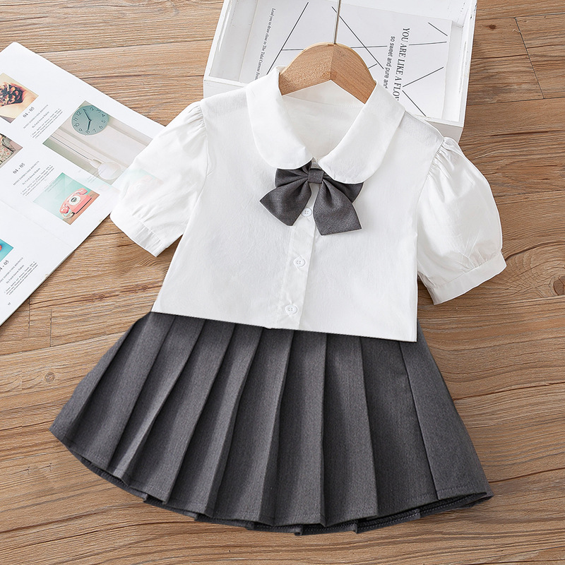 蝶結び女の子シャツJKセット2025春秋新作子供シャツトップス子供服プリーツスカート