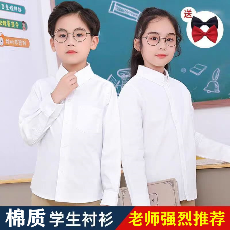 子供の白いシャツ男の子と女の子の綿の白い長袖シャツ春と秋の全学生パフォーマンスベルベット学生服