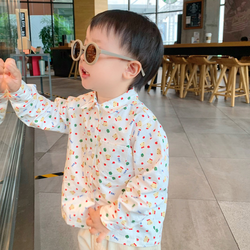 F家子供服24春新作 男女兼用 綿100% プリントシャツ 子供用おしゃれで万能な綿長袖シャツ