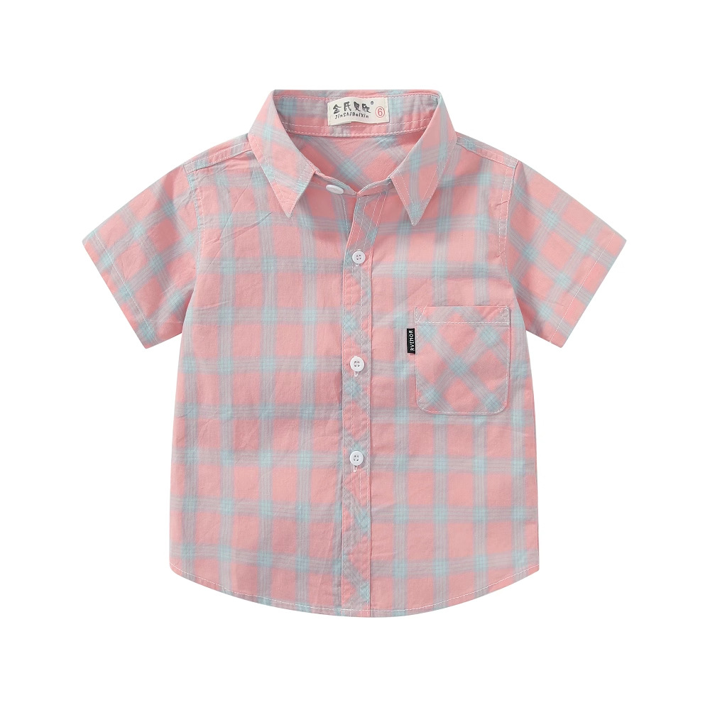 男の子の半袖のシャツの純綿の子供服の中で大きい子供の上着の赤ちゃんの子供の格子のシャツの女の子の洋気の半分の袖のシャツ