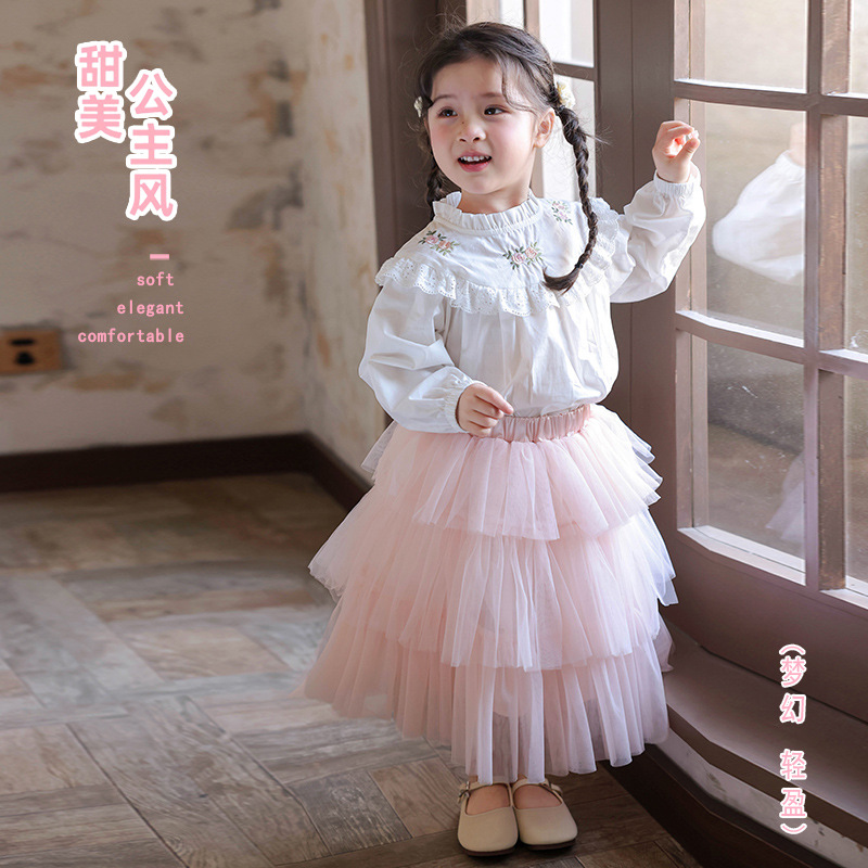 湖州織里童装2025春新商品韓国版女の子刺繍レースシャツ子供長袖子供シャツ