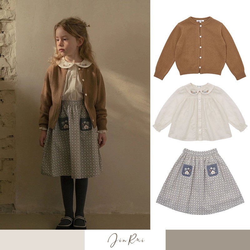 女の子用シャツ 春秋服 白シャツ カーディガン ドールカラー 小さな女の子向け 韓国風 カジュアル 長袖トップス インナーシャツ
