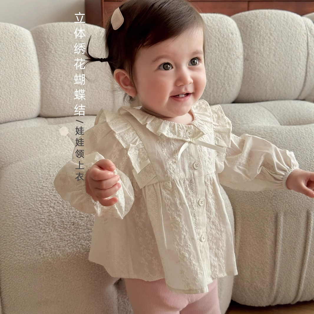 2025新純綿A類乳幼児韓国系丸襟春モデルかわいい洋気女赤ちゃんシャツ上着子供シャツ