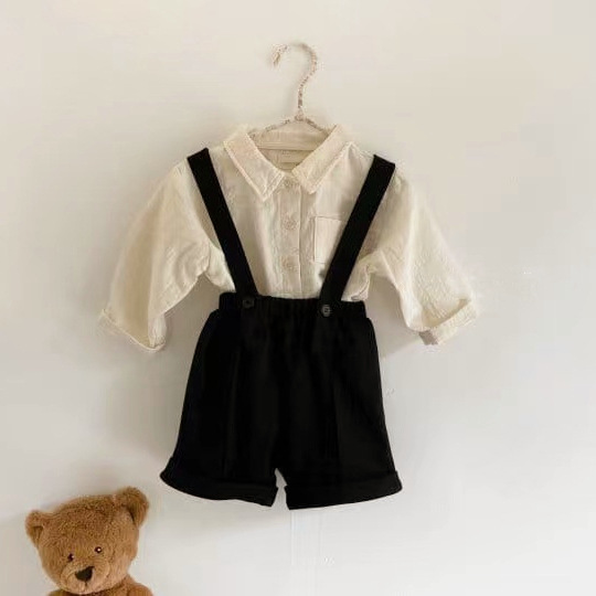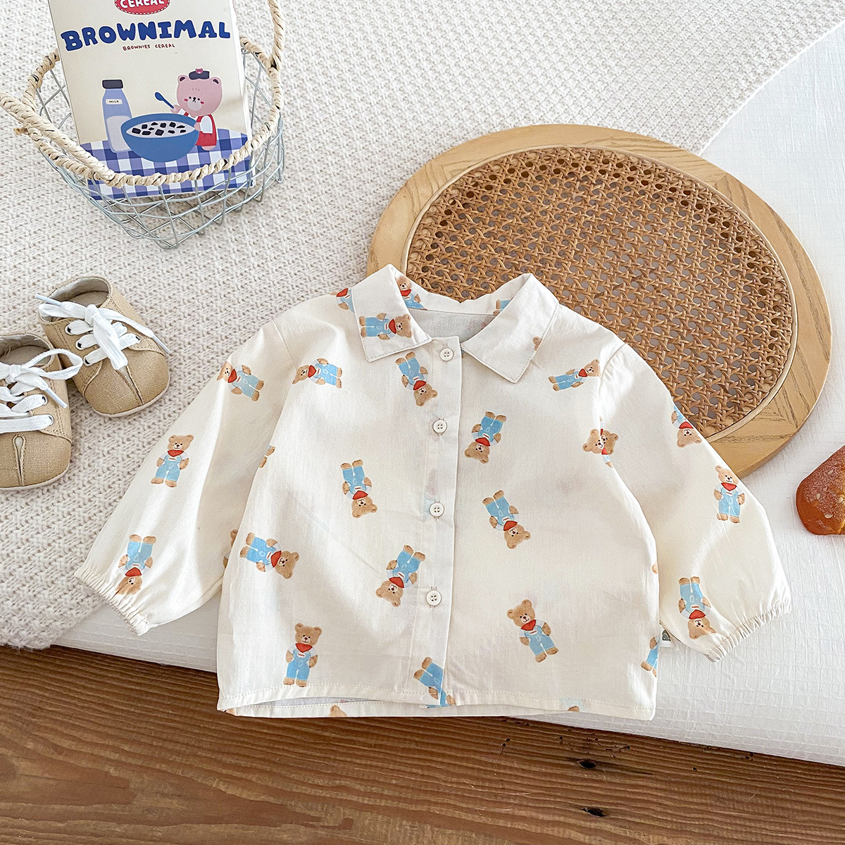 韓国版ins子供服シンプルな洋気熊襟シャツ