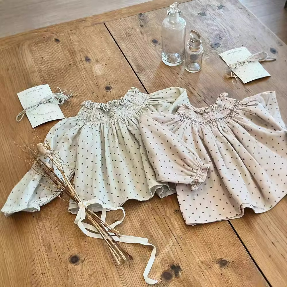 (在庫あり)2色展開 ドット柄ベビーワンピース 2024年秋物 韓国風おしゃれベビーワンピース