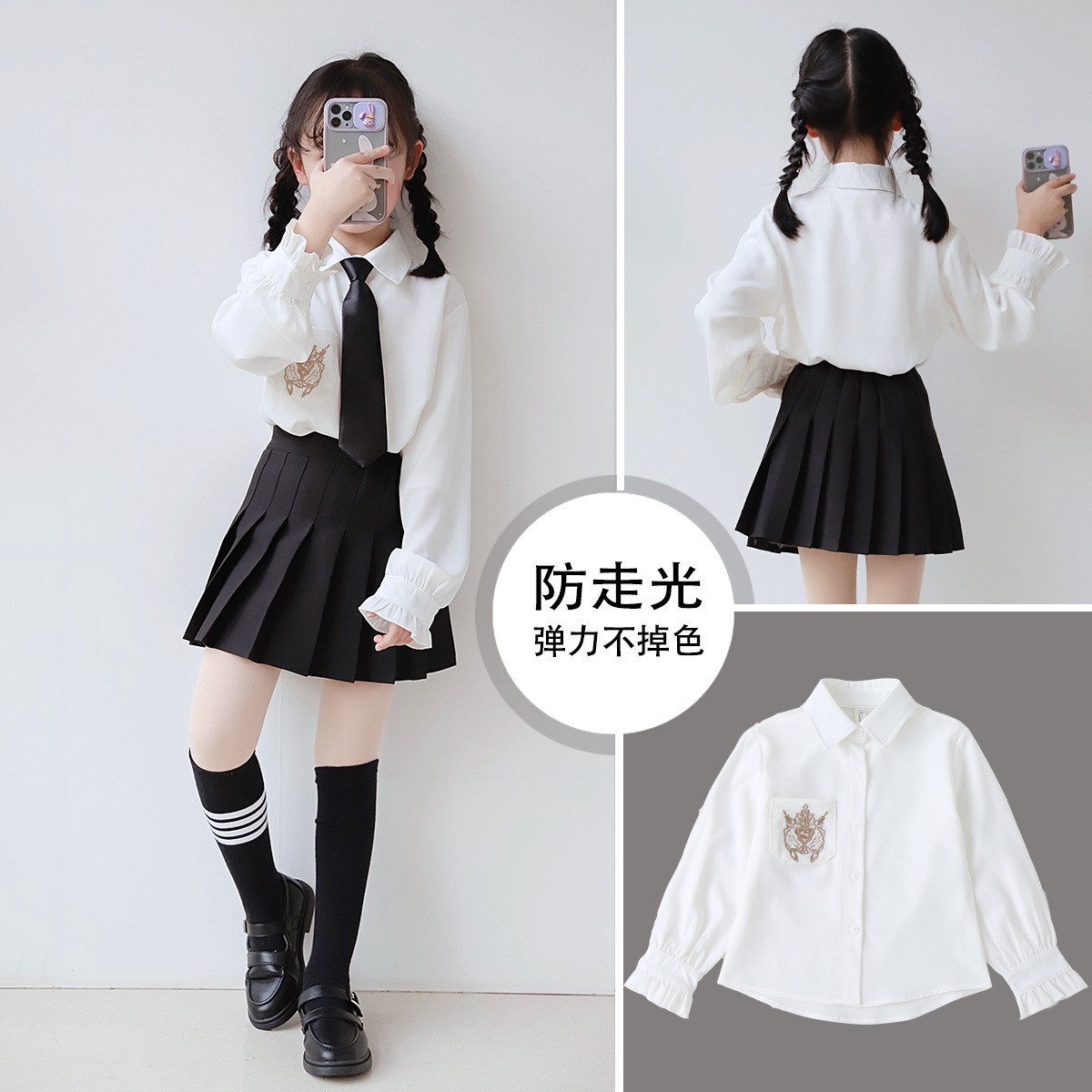 女の子の純綿の子供の襟の長袖のシャツの春秋2025の新型の中で大きい子供の洋気の子供の白いショーの上着