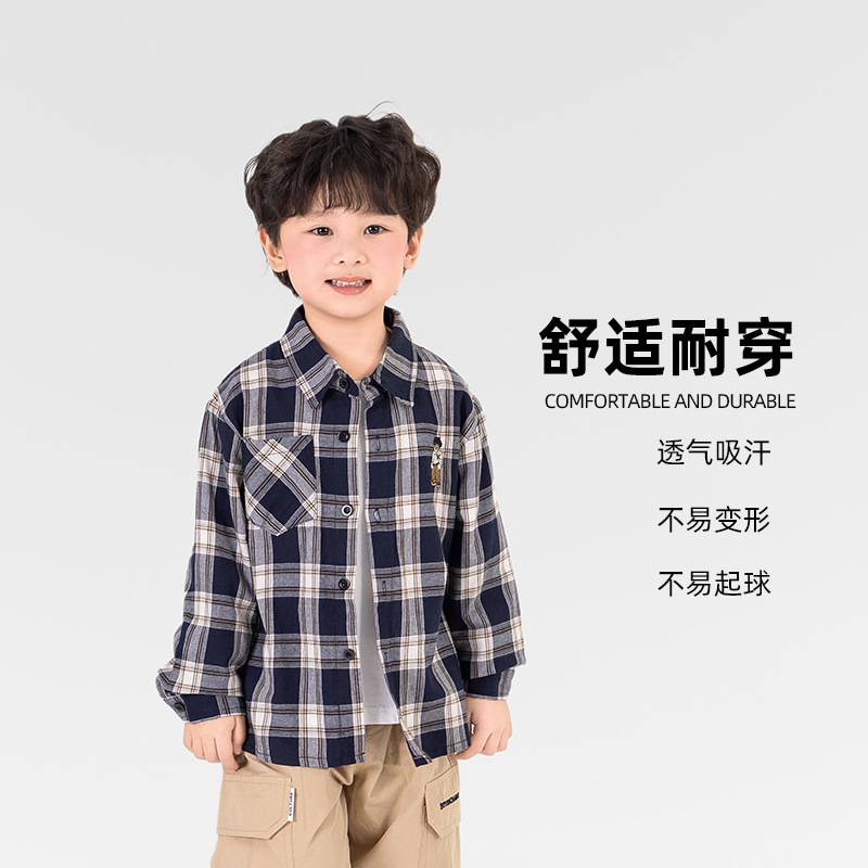 Knight Bear ボーイズピュアコットン長袖シャツ秋服 2025 春と秋の新子供韓国風子供服ファッショナブル