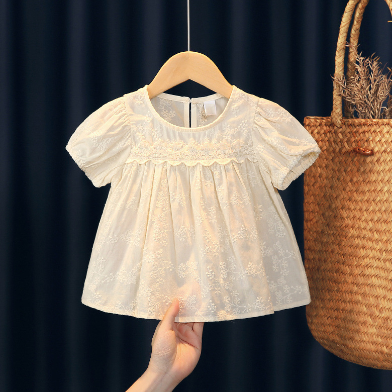 女の赤ちゃんジャカード甘い薄いトップ綿ベビードールシャツ女の子半袖シャツ夏の新しいスタイルの女の子