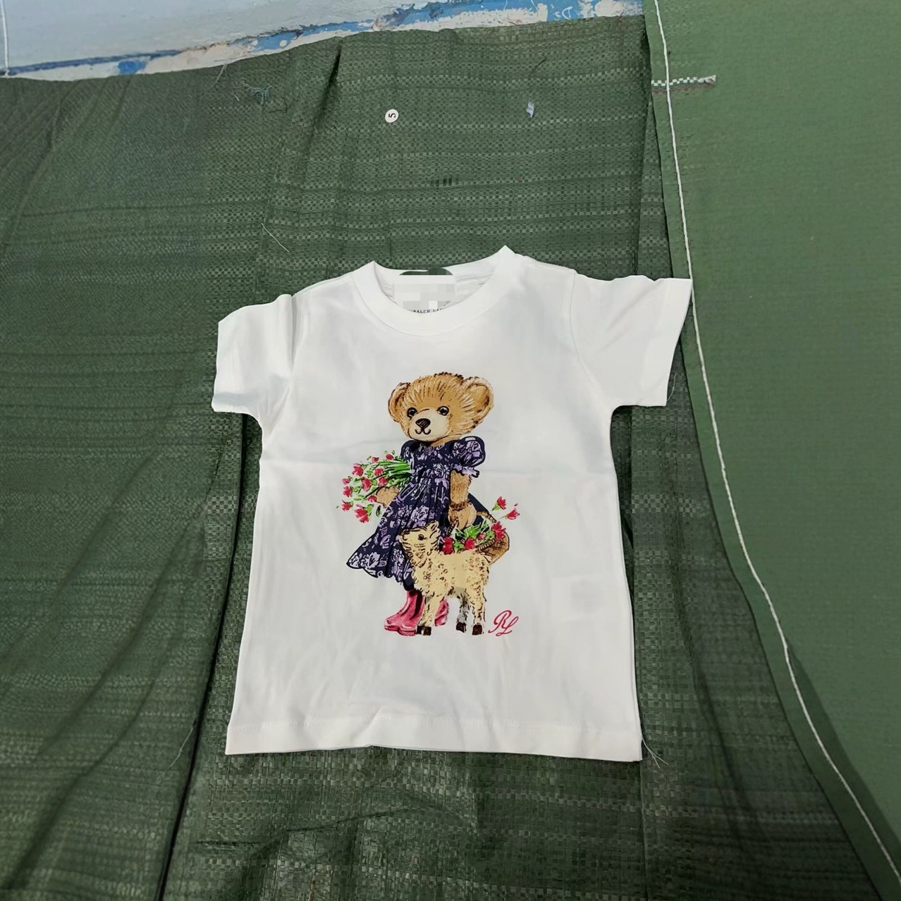 2025年新作 女の子向け 夏服 韓国風 多彩な着こなしができる 子供らしいスタイル 四匹のクマ柄プリント アイスシルク 半袖 ネットで話題のTシャツ