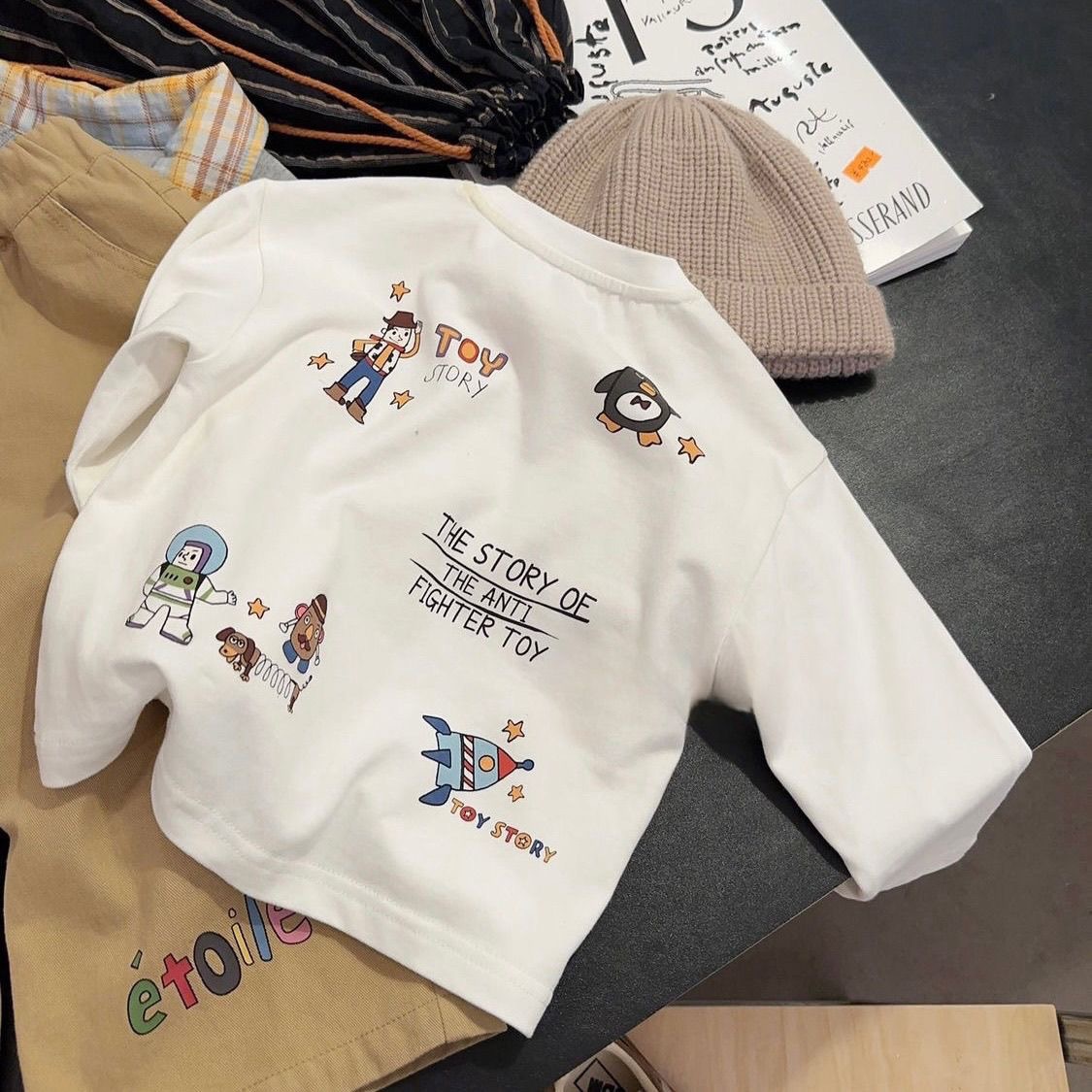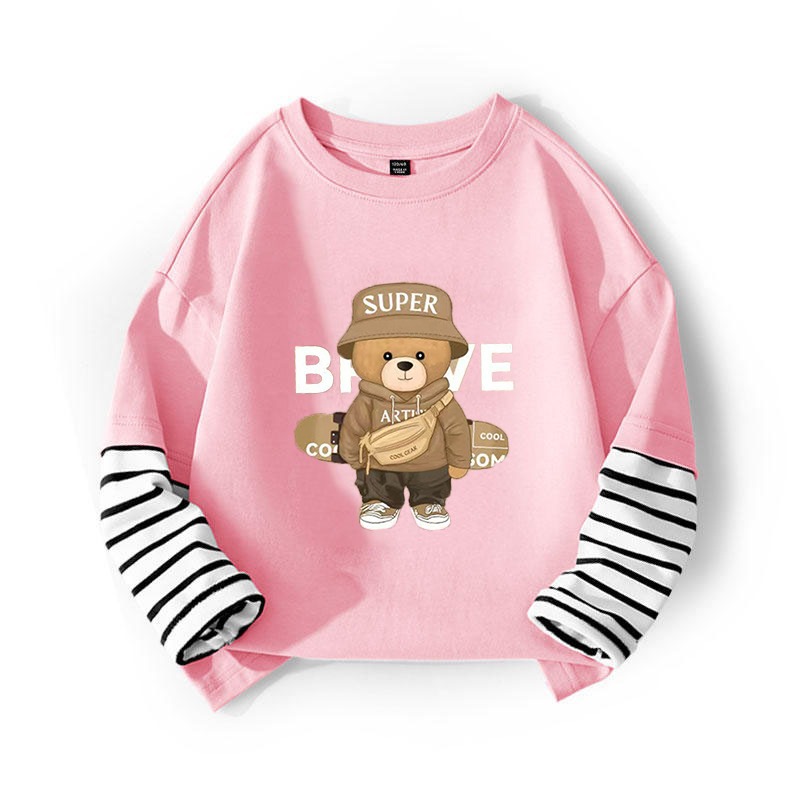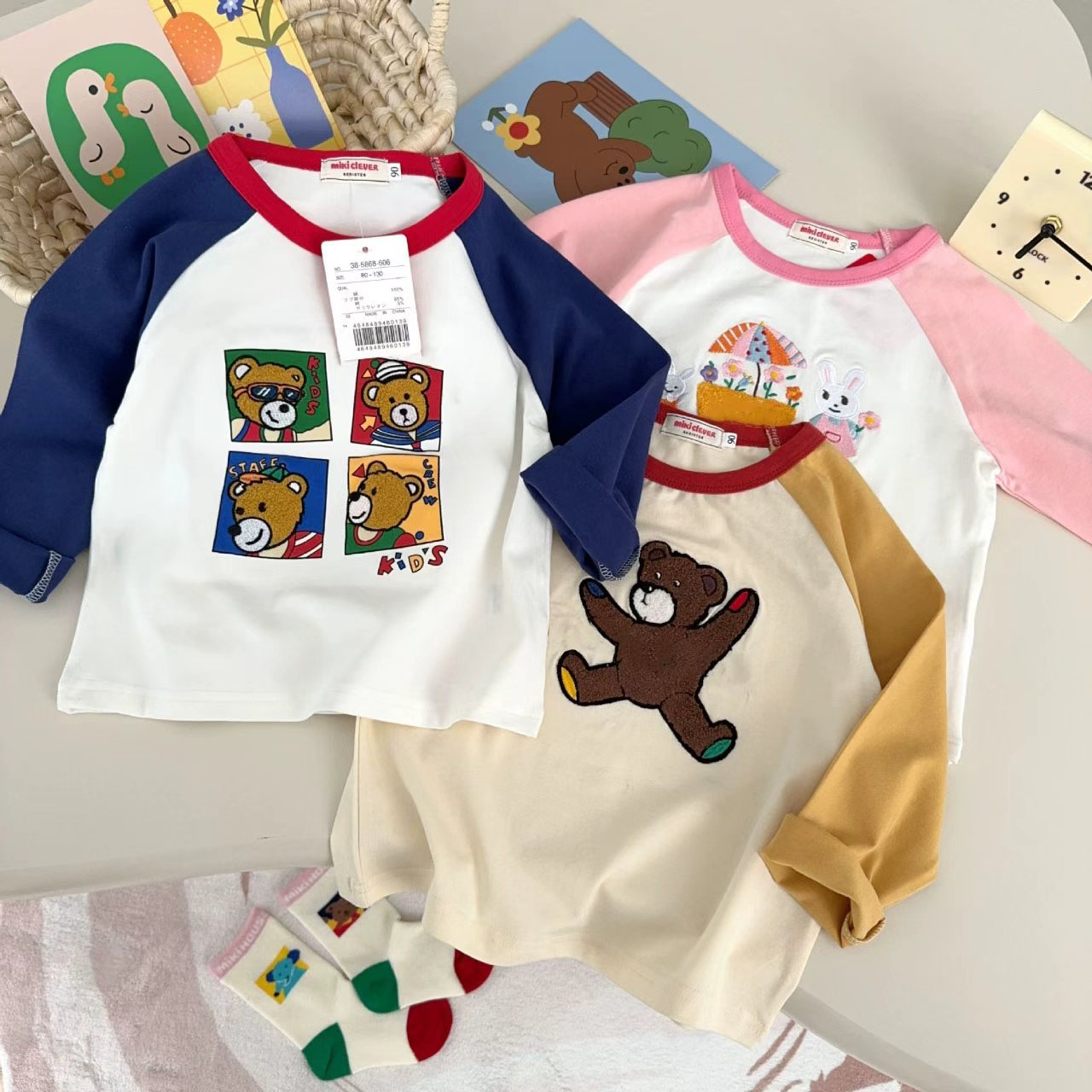 外国貿易日系男女童装多色tシャツ25春新作タオル刺繍アニメ玩具熊挿肩長袖5070