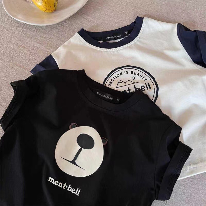 100% 純綿子供半袖tシャツ2024新型男女子供服衝突色アニメ熊赤ちゃん衝突色夏服