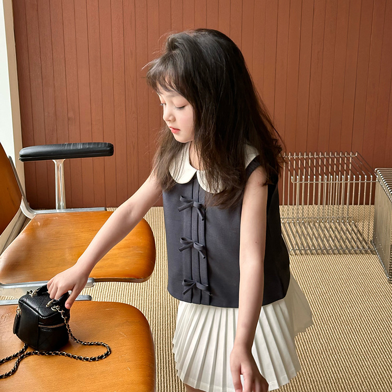 Elmo Beibei 中型と大型の女の子の赤ちゃん夏韓国風カレッジスタイルリボンかわいい人形襟ノースリーブトップ