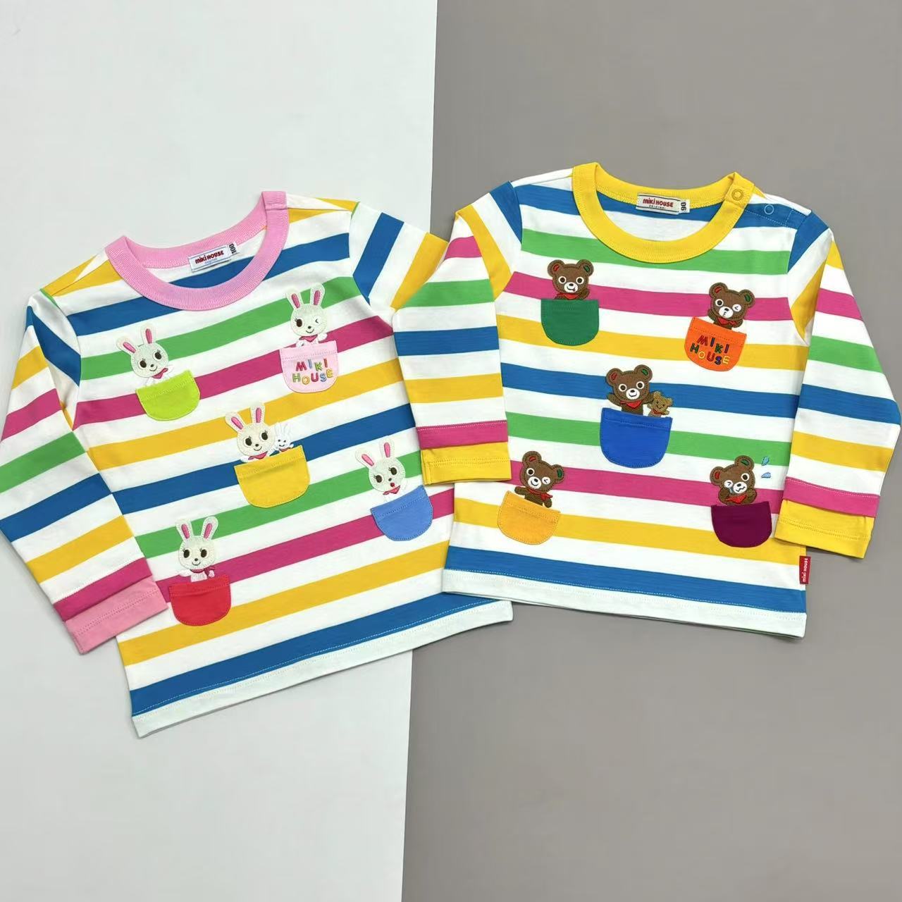 【現品】高定MIKI童装25夏潮牌縞熊小兎模様純綿子供tシャツ