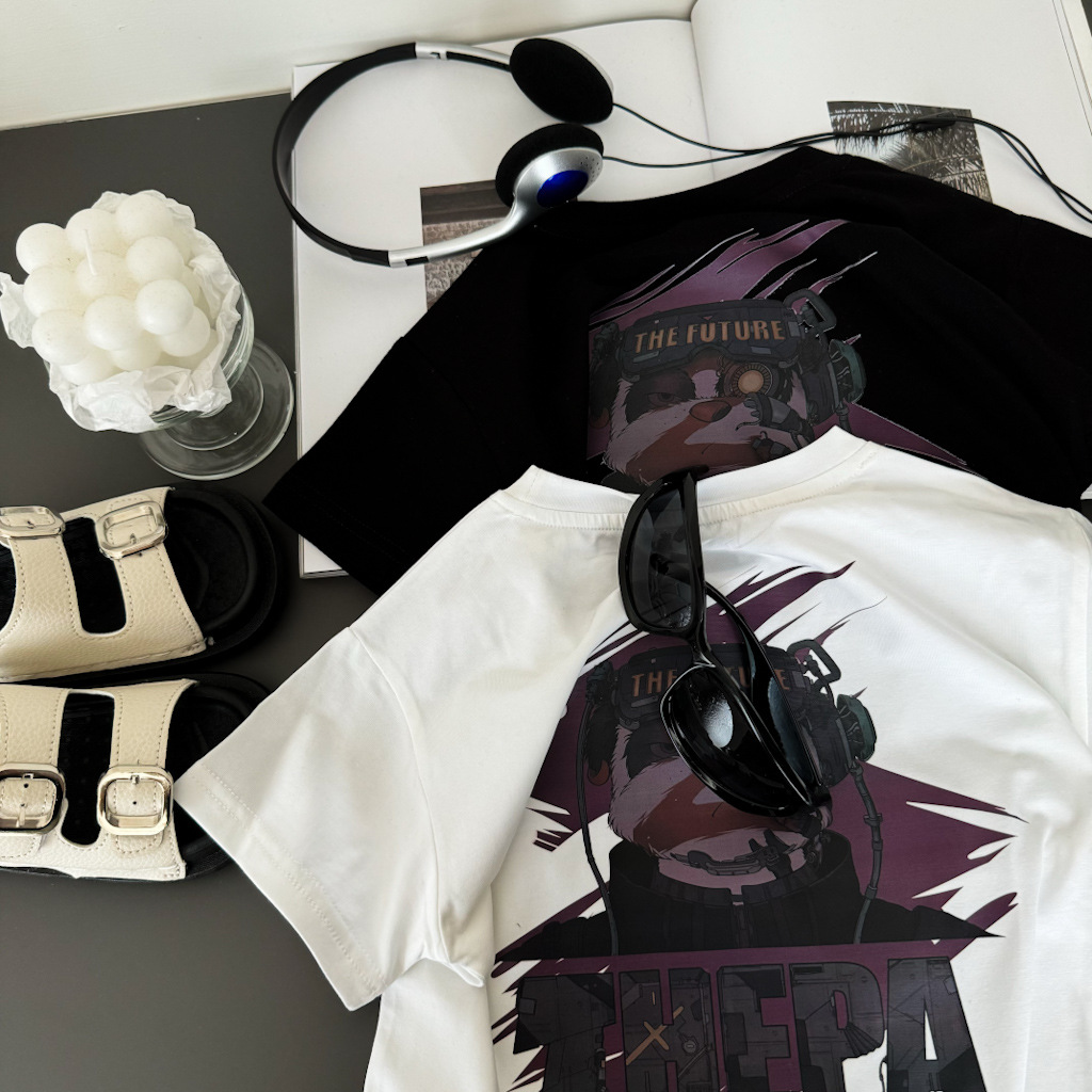 立体人形親子半袖tシャツ夏服2025新型ゆるいアニメ上着洋風上着卸売り