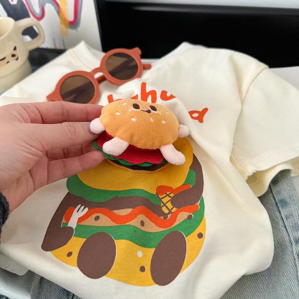 子供の立体人形半袖 Tシャツ夏服 2025 新しいルーズ韓国漫画トップ半袖ボトムシャツトレンディ