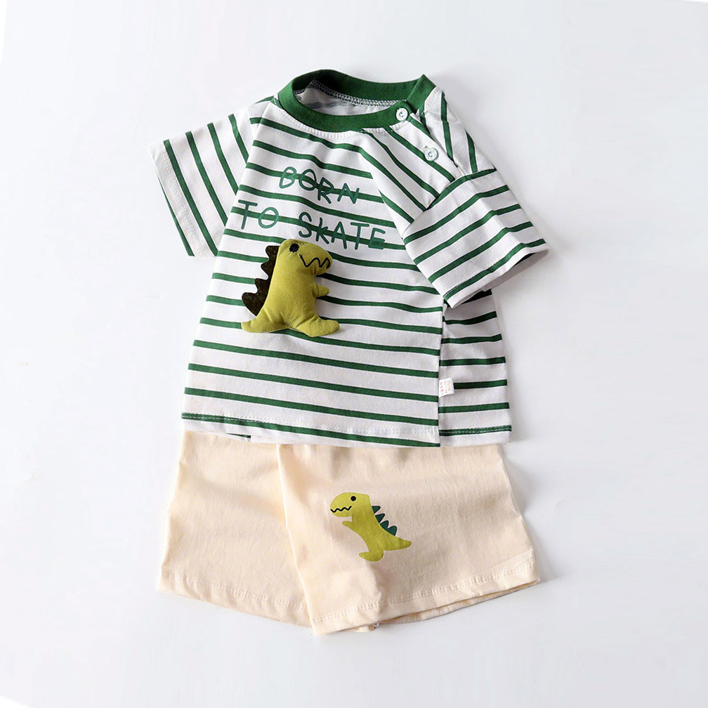 新しい子供の半袖セットの漫画の人形tシャツ綿の男の子と女の子の夏の2つのセットのゆったりした子供の肩のボタン