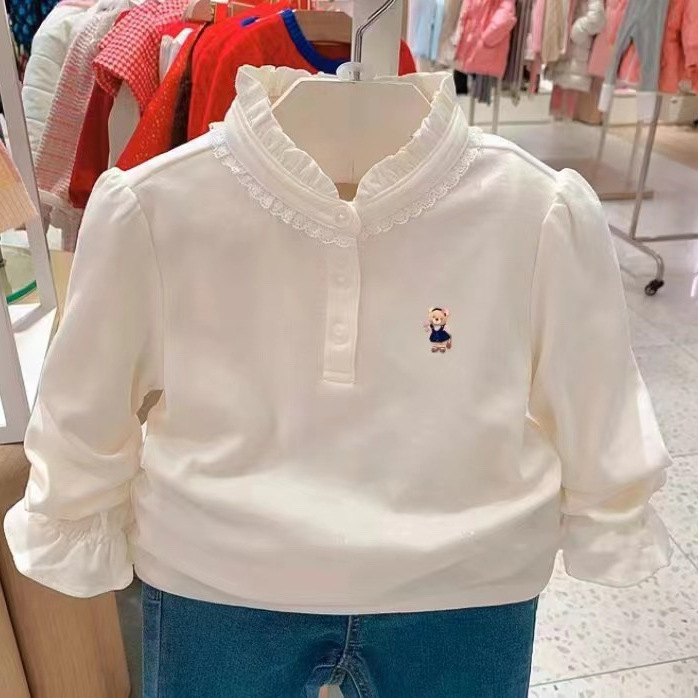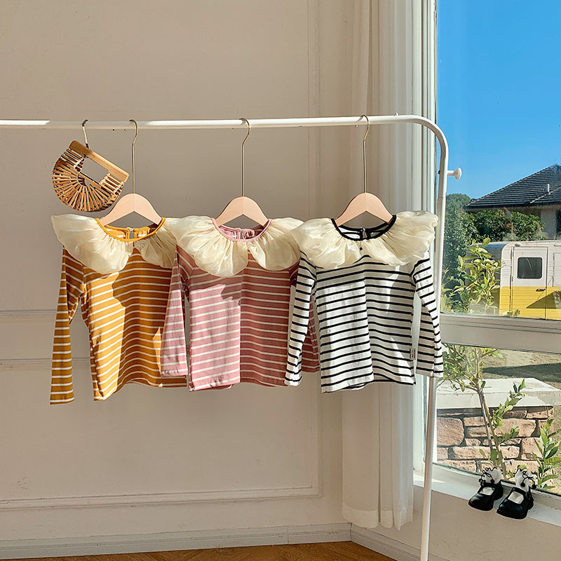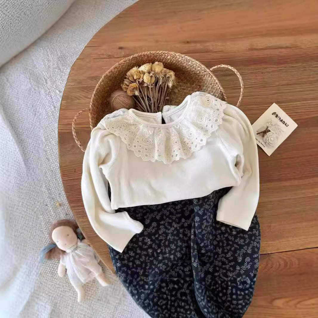 2025 女の子韓国人形襟シャツ秋ベビー Tシャツ春と秋の長袖底シャツベビートップ 3826