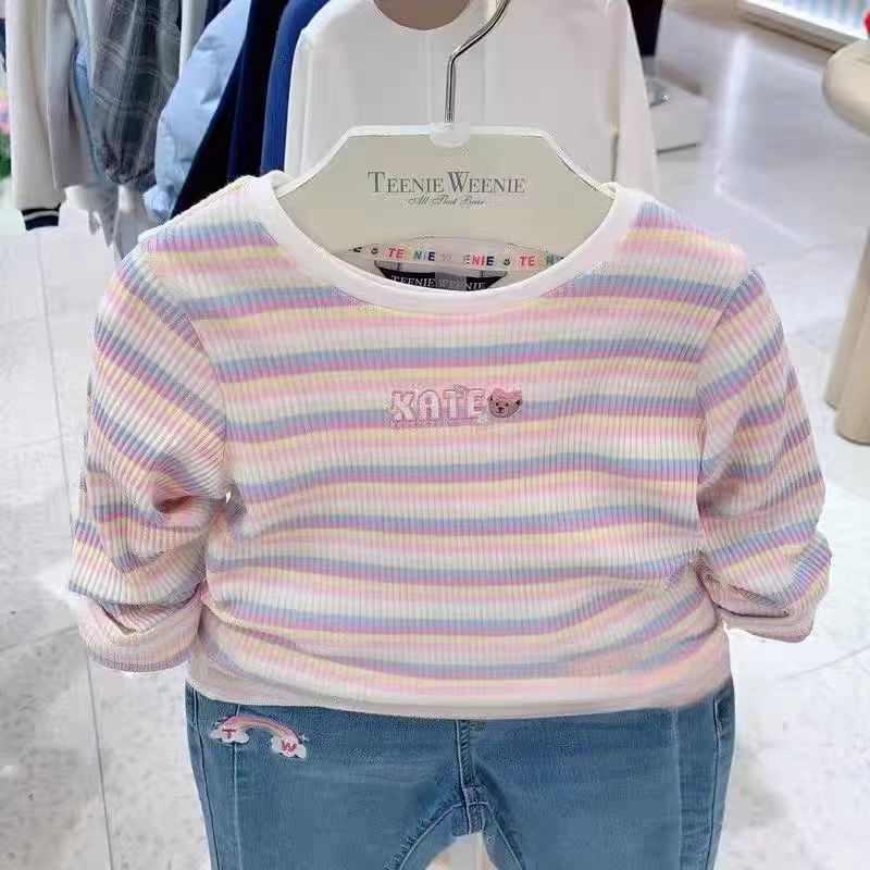 在庫あり キッズ服 春秋新作 女の子用ニットストライプTシャツ TKLA241253K-00 1枚から代購可能