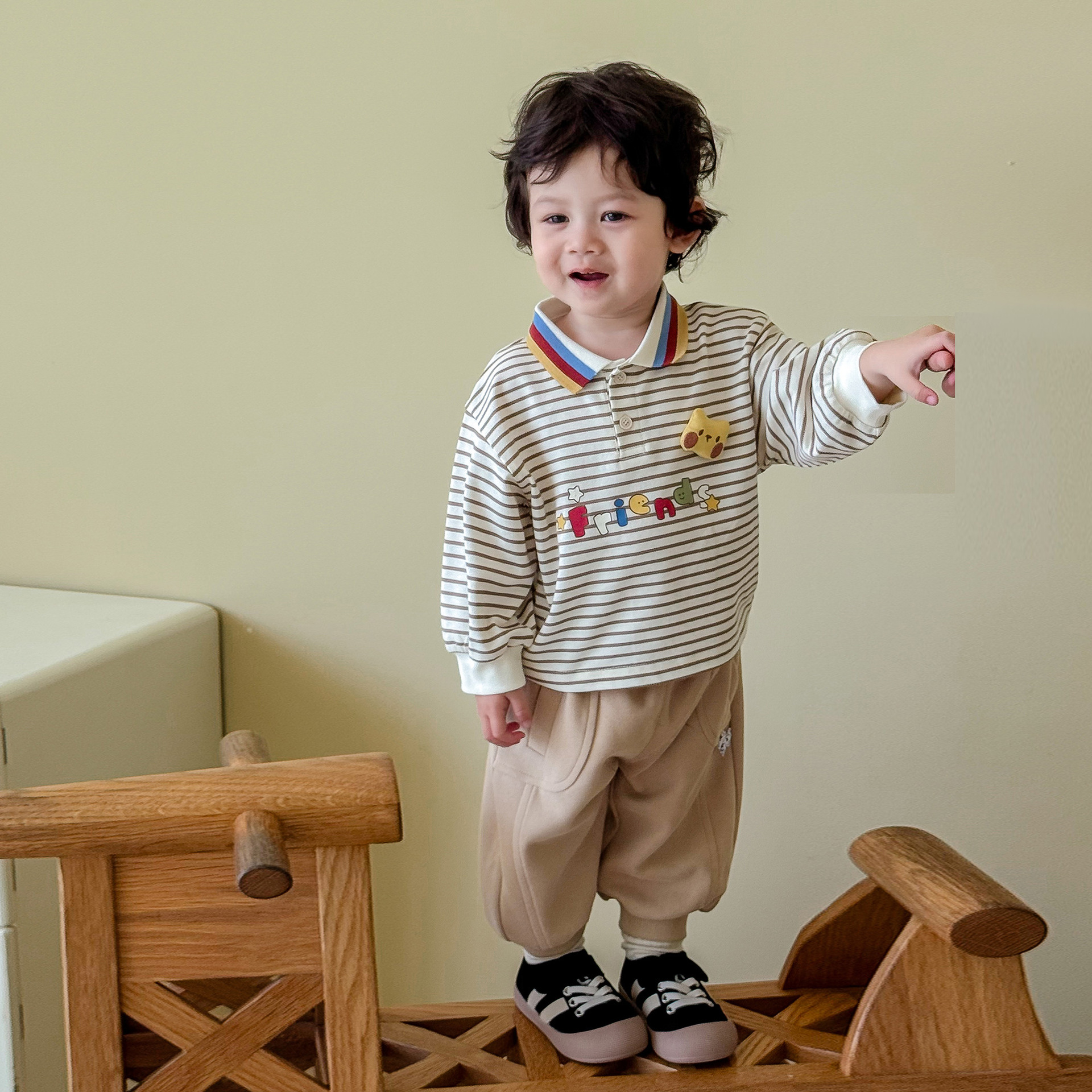 子供のtシャツの新型男の子の底のシャツの24秋の新商品のストライプの熊のプリントの長袖のカジュアルな上着の韓国版