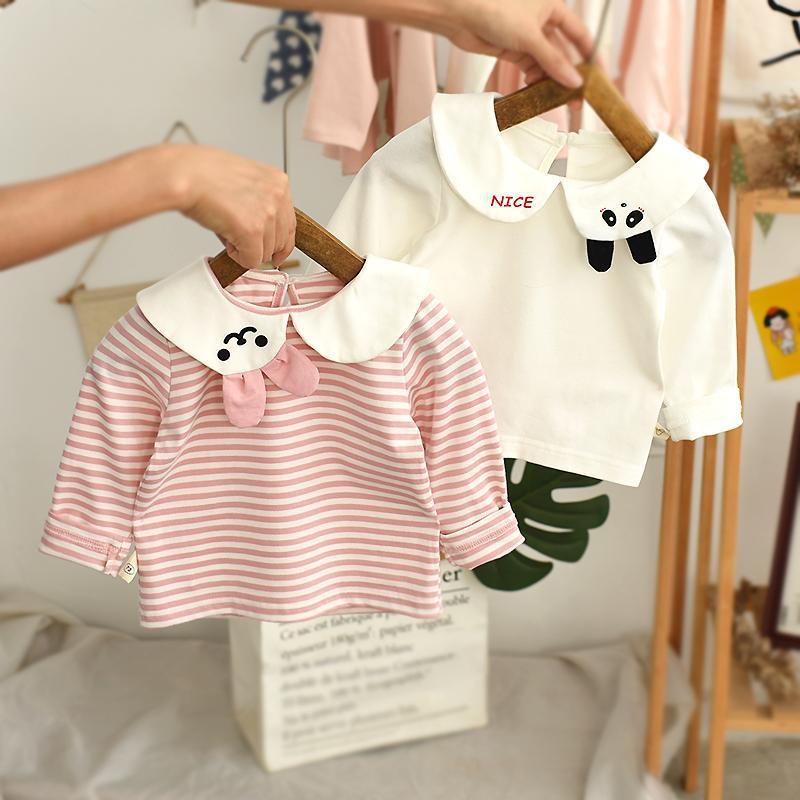 女の子のかわいいボトリングシャツ 2025 秋の新作ベビー韓国風人形襟 Tシャツ子供の立体バニートップ