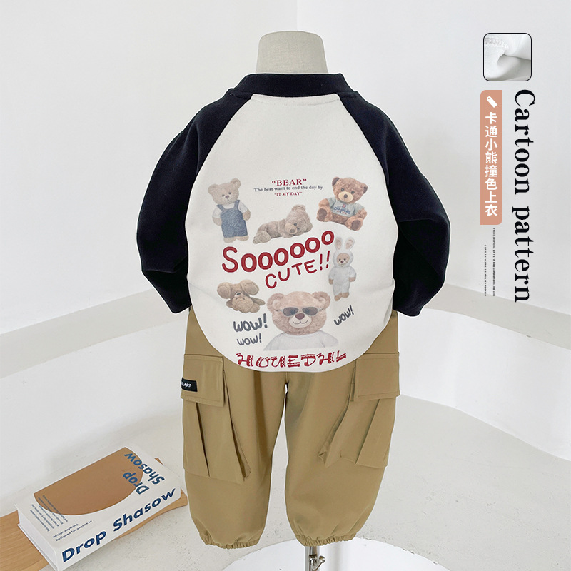 風の谷2024冬の新型子供服子供韓国版アニメ熊tシャツ男女の子供が色にぶつかって厚くなった