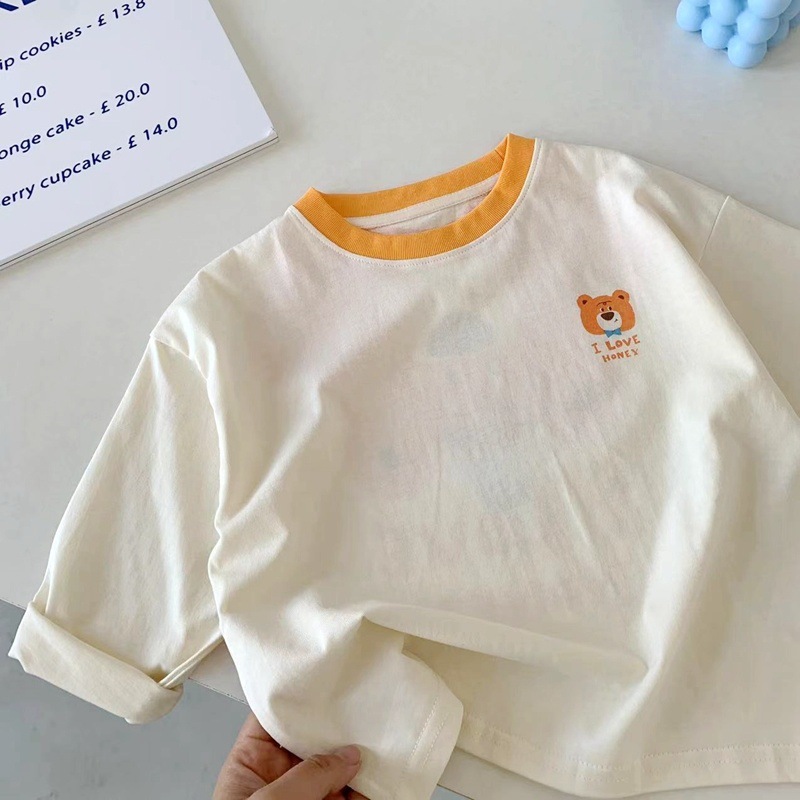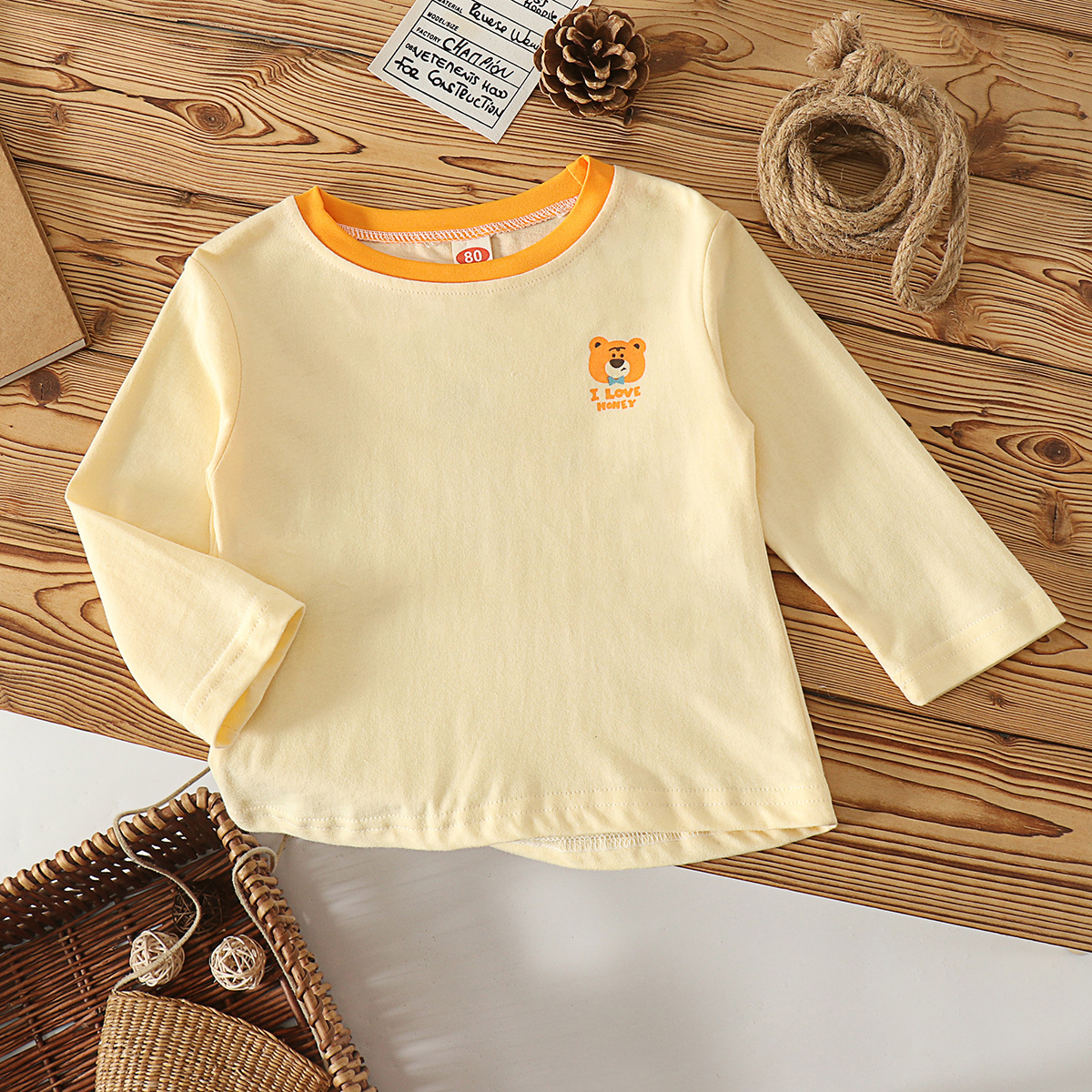 子供の長袖tシャツ ~ 24春の新型男の子漫画の熊の上着の女の子の綿の丸首の底のシャツのファッション