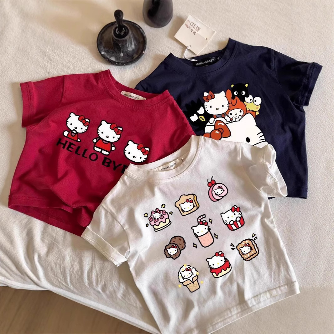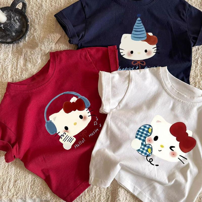 女の子漫画純綿 Tシャツ半袖子供服男の子ベビー子供トップスかわいい kt 猫夏底シャツトレンディな t