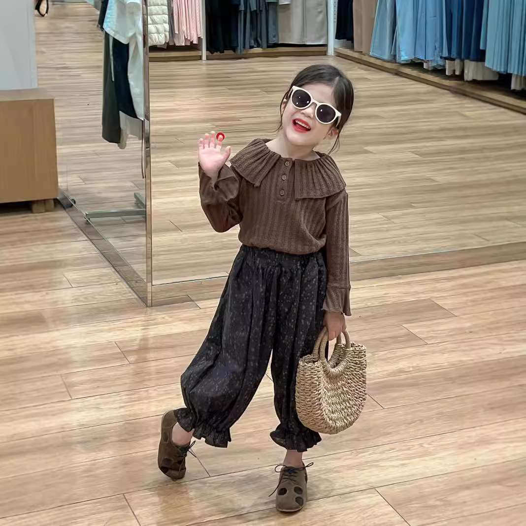 女の子の秋の服の森系の甘い襟のニットの上着の子供のシャツの砕花は口の灯籠のズボンを収めて分けて撮ります。