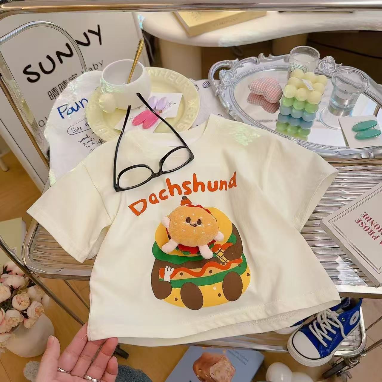 子供25新型純綿夏ゆるい韓国版アニメ立体ハンバーガーかわいい立体人形半袖tシャツ