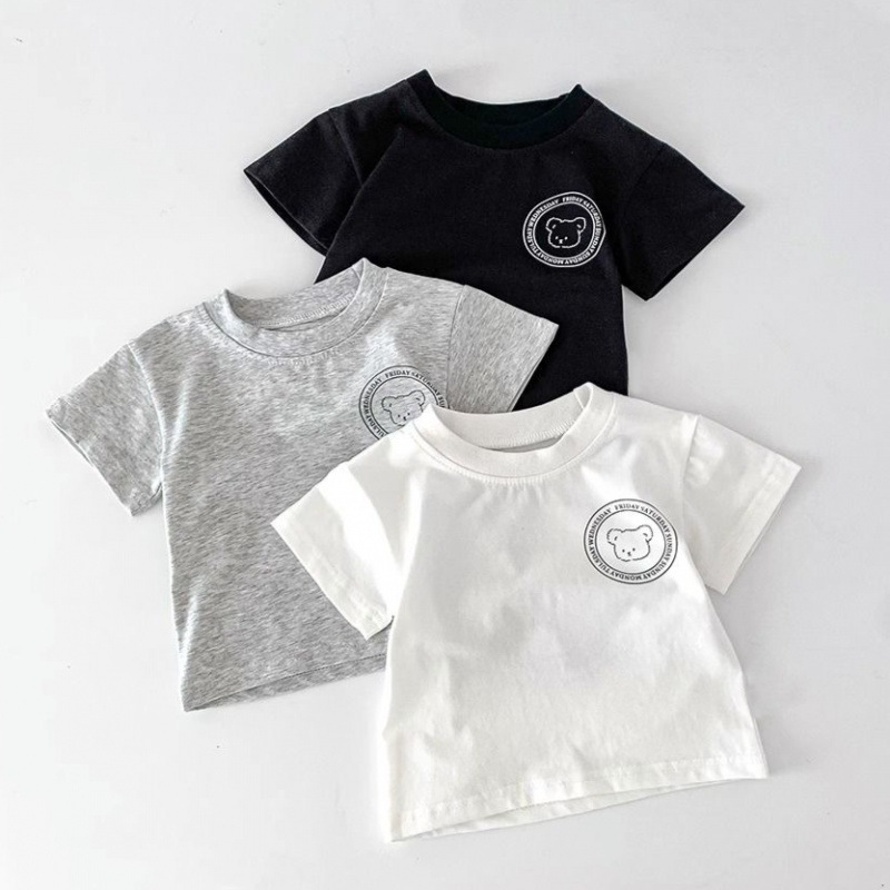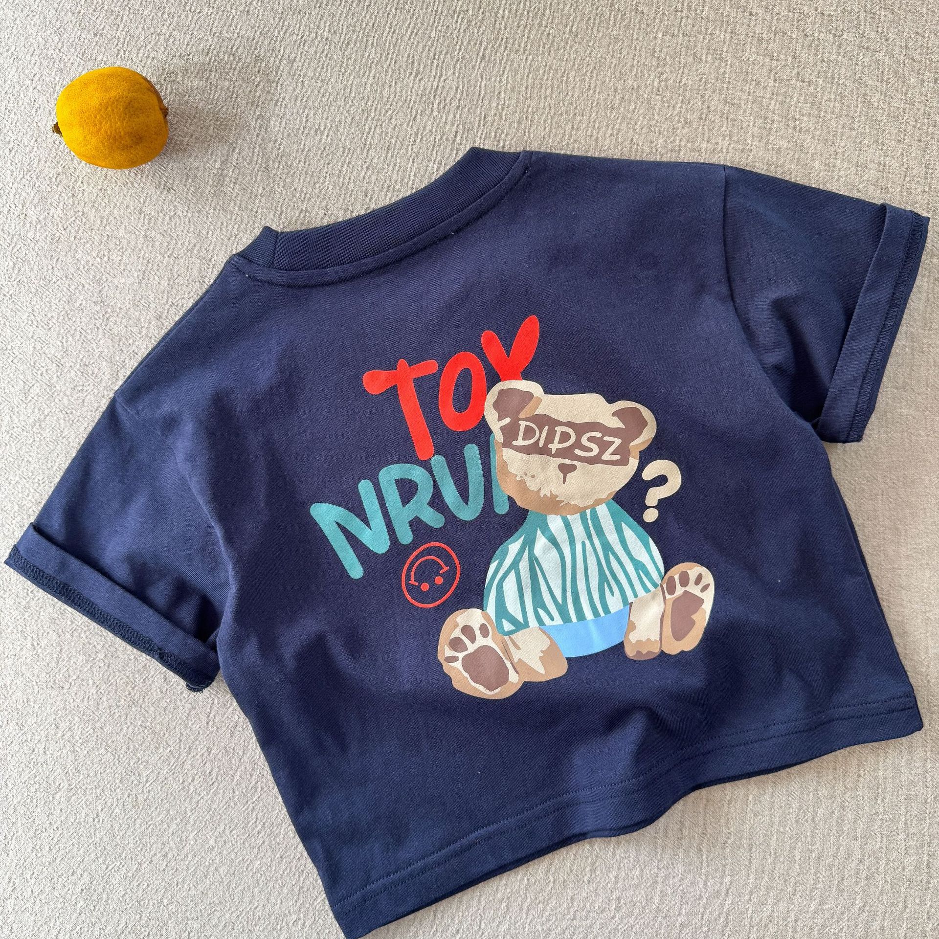 子供tシャツ2025夏の新型子供服男の子女の子熊プリントカジュアル半袖赤ちゃん丸襟上着ファッションクール