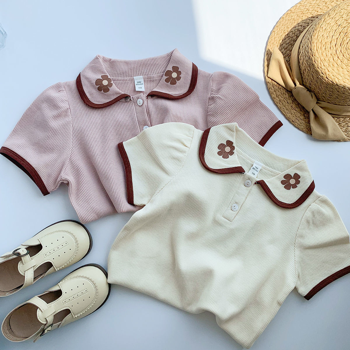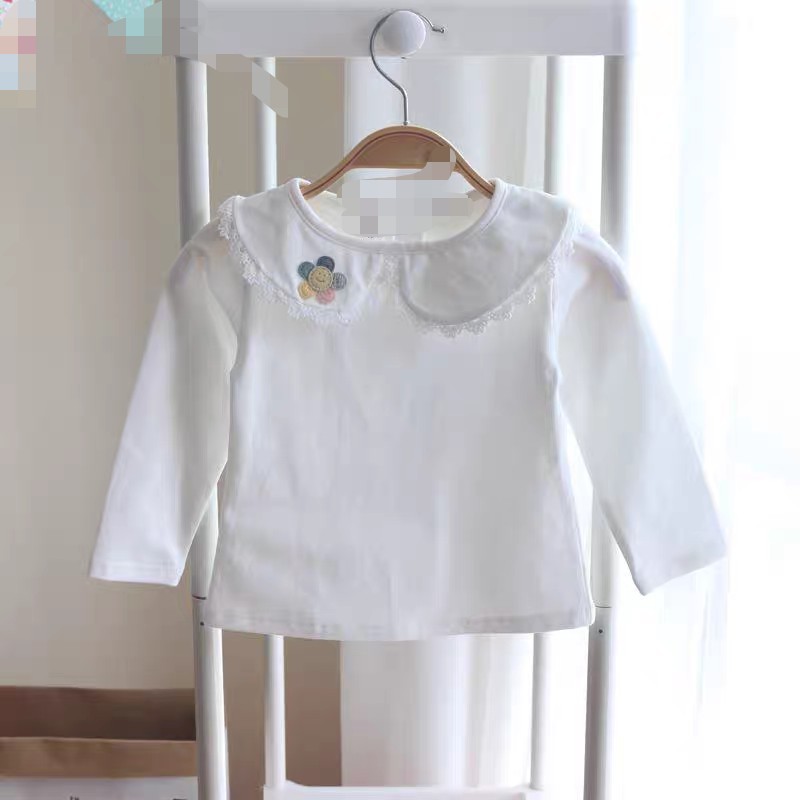 韓国系の女の子の春の服の底のシャツの新型の洋気の赤ちゃんの子供の襟の刺繍の百合の上着の赤ちゃんの気質の服