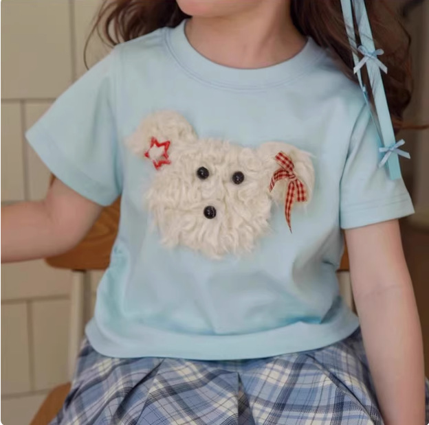 女の子半袖tシャツ2025新型子供夏服立体人形ぬいぐるみぬいぐるみ綿T洋気赤ちゃん上着潮
