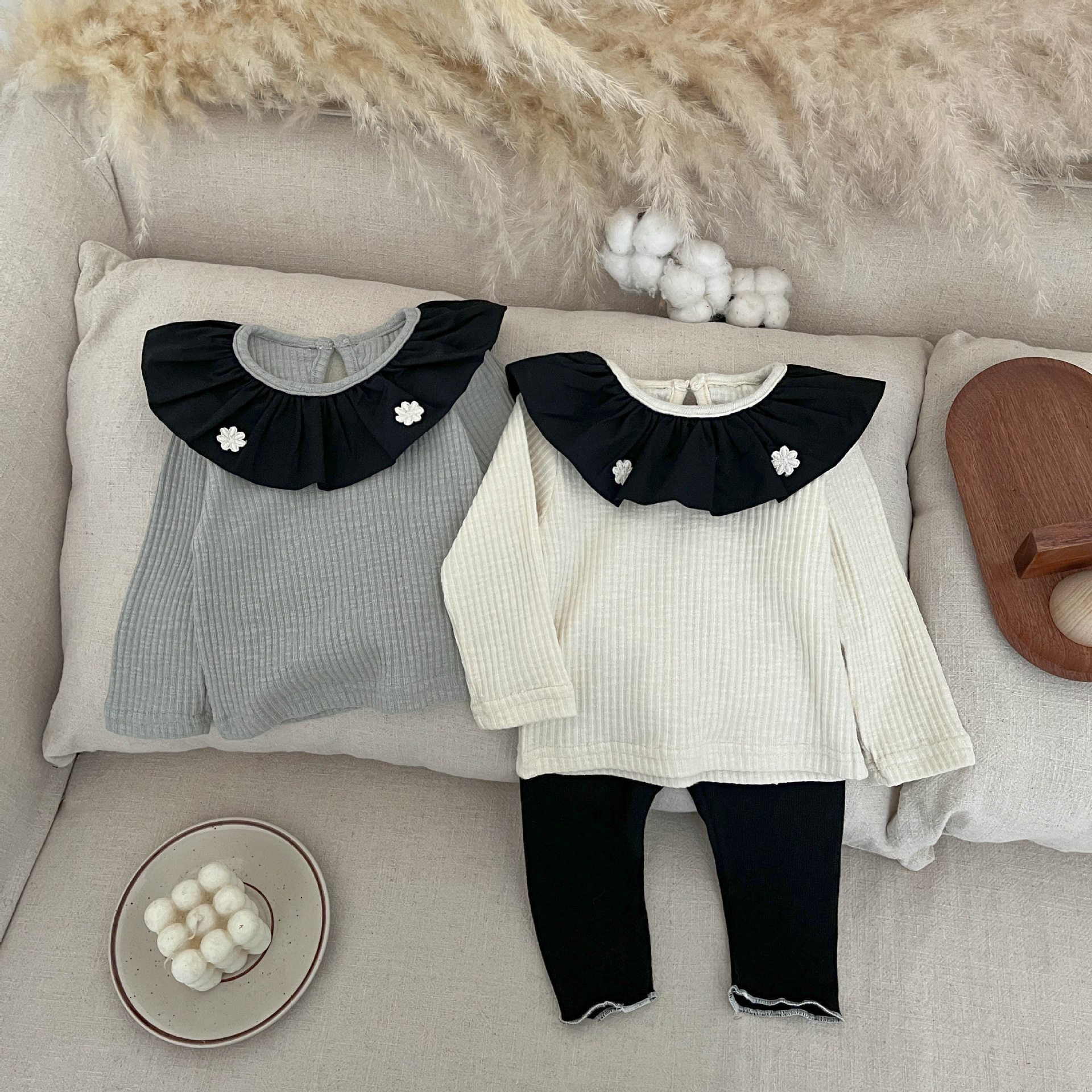ベビー服女の子人形襟長袖 Tシャツベビー秋服春と秋子供ポロ襟ボトムシャツトップトレンディ