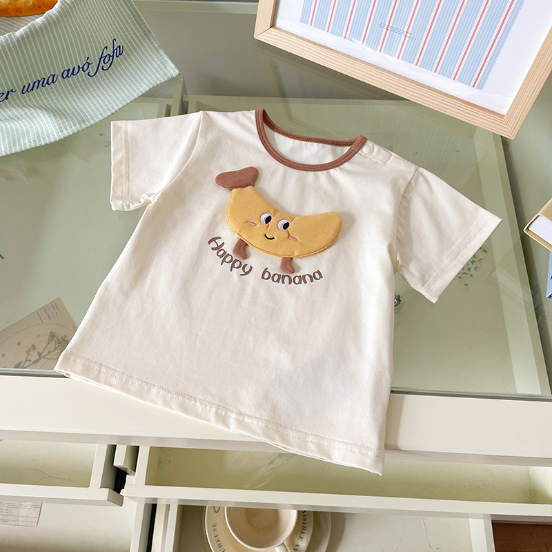 【現品】子供半袖2025夏新作立体人形バナナアルファベット丸襟ゆったり薄手tシャツ