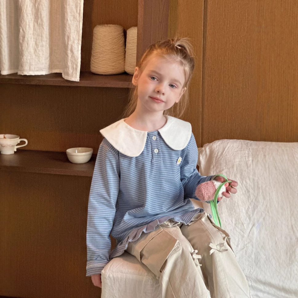 女の子用ストライプTシャツ 2025春秋新作 韓国風子供服 ドールカラーインナー ベビー可愛いトップス