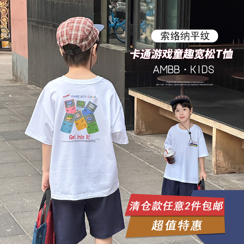立体人形子供半袖tシャツ夏服2025新型ゆるい韓国版アニメ上着洋気シャツ潮T