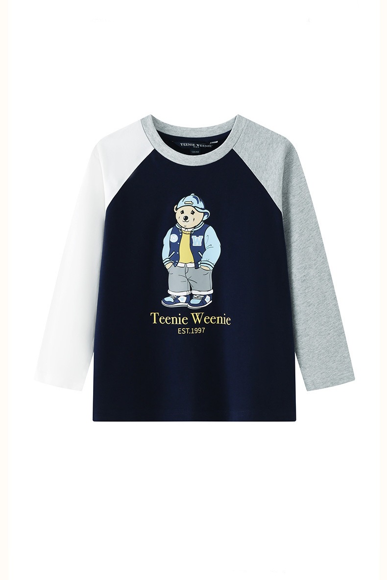 男児秋の長袖かわいいカジュアルベアープリントtシャツtkla227592k