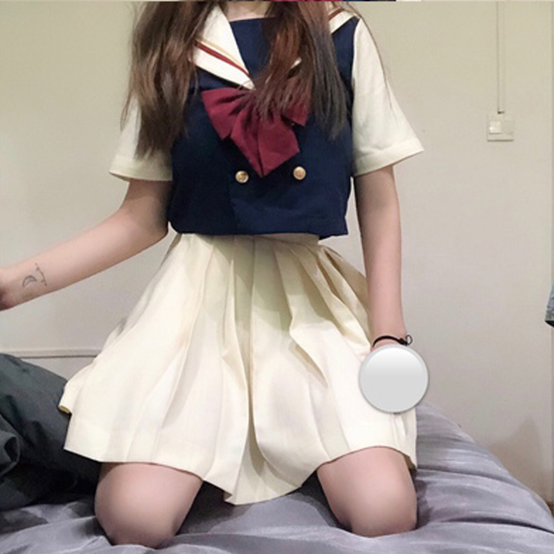 現物卸売りオリジナル紺色二本長半袖中間服基礎金jk制服セットセーラー服セット
