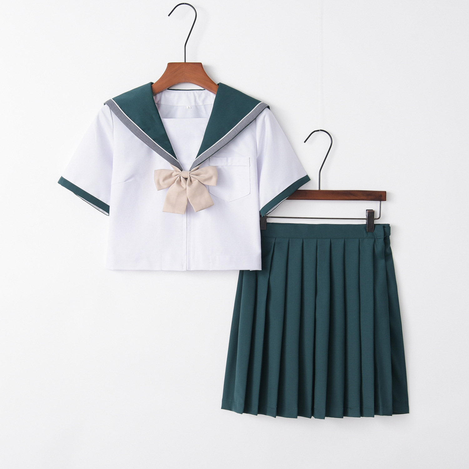 メーカーのソースは緑の二色襟の柔らかい妹のセーラー服jk制服のスカートの制服の中間服のスーツです。