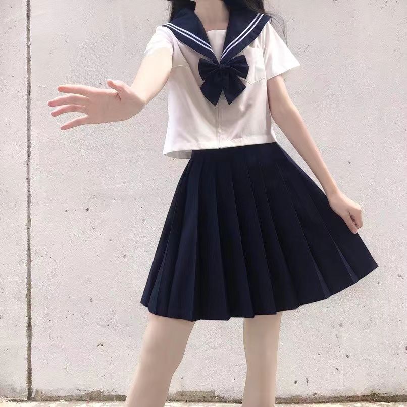 卸売りセーラー服jk制服スカート正規版白二本基礎モデル日系学院風秋の短い学生スーツ女性