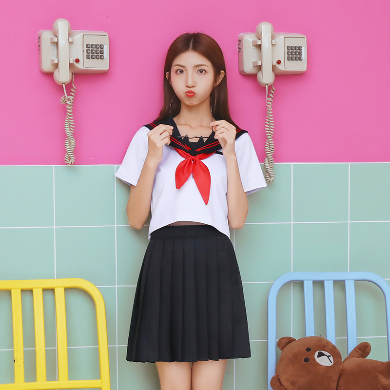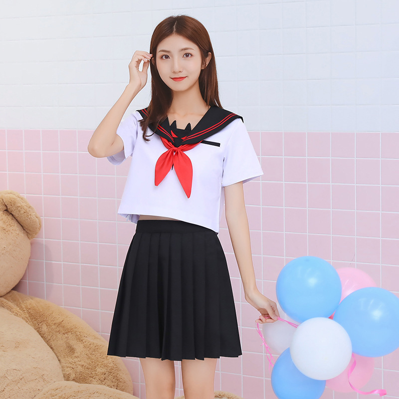 セーラー服ユニフォームスーツ基础黒襟白二本三本日系学院风フリルスカート学生服ネイビー