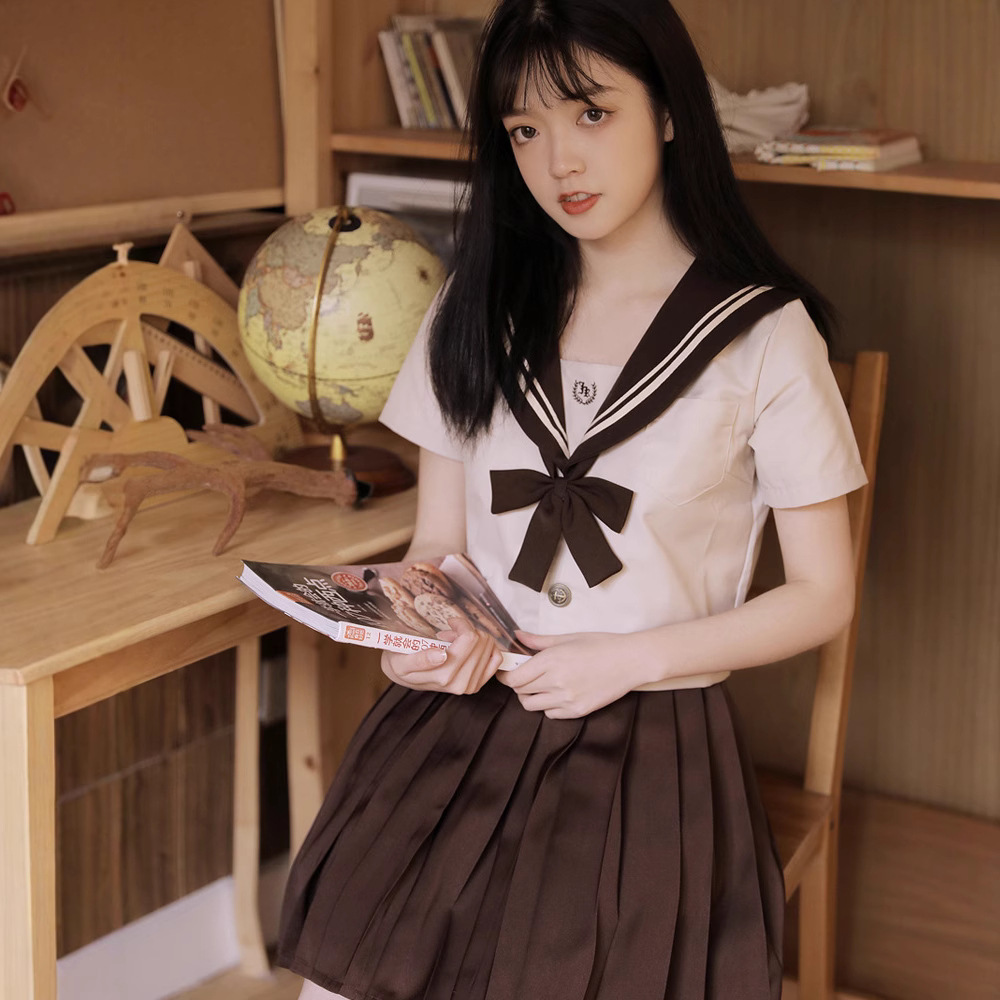 現物卸売り正統jk制服スカート正規セット日系コーヒー色三冊二冊基礎タイプのセーラー服