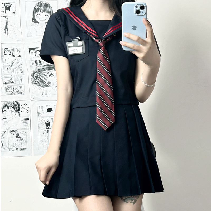 日系正统赤二本セーラー服ユニフォームスーツ夏半袖班服演出服ミリタリースカート学生スーツ