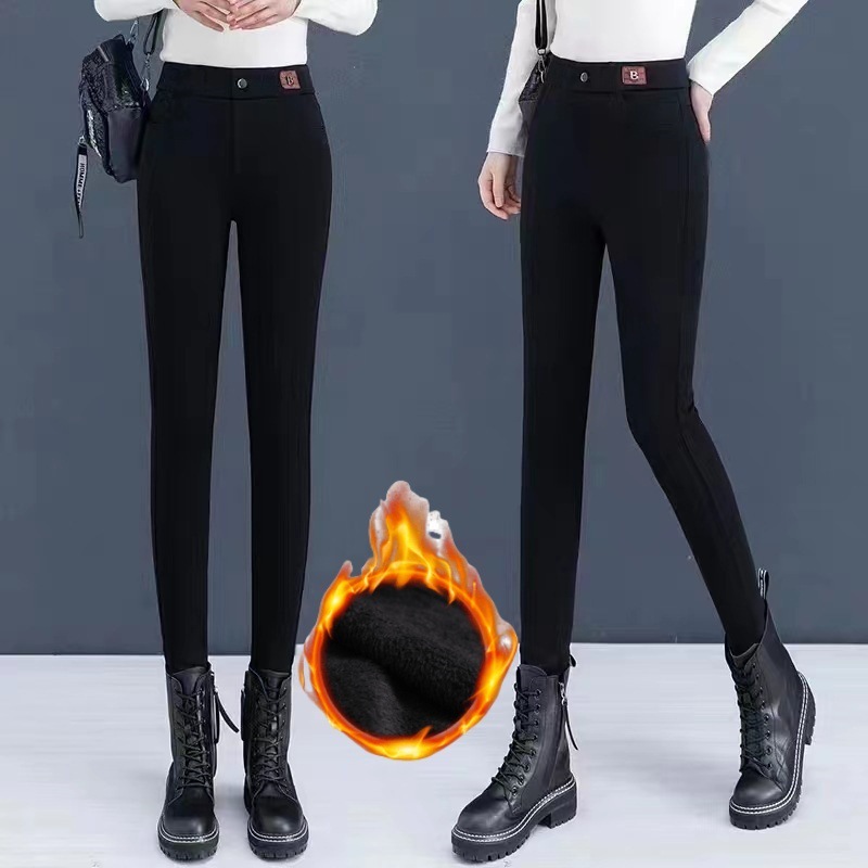 Bマークのベルベットは腰の高いレギンスを厚くして、冬のレギンスに合わせて痩せたレギンスの女性ファッションのカジュアルなボタンパンツを見せます