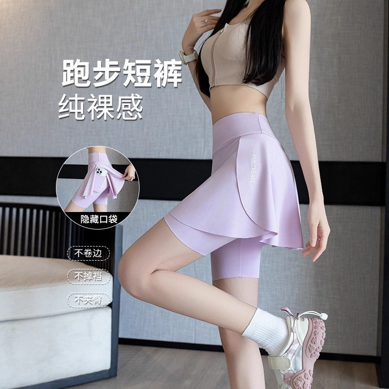 スポーツパンツのスカートの偽の2つのヨガのスカートのバービーのサメは底を打ってテニスのスポーツのズボンのスカートの安全ズボンのスカートに乗ります。